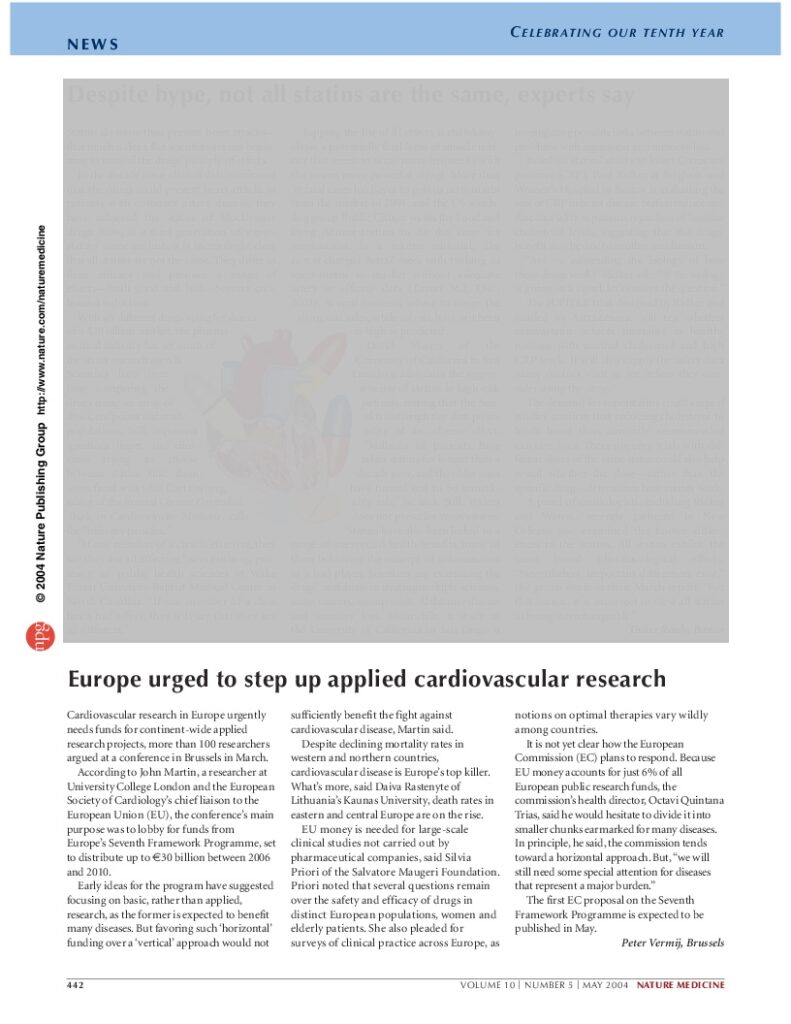 According to John Martin, a researcher at University College London and the European Society of Cardiology’s chief liaison to the European Union (EU), the conference’s main purpose was to lobby for funds from Europe’s Seventh Framework Programme, set to distribute up to €30 billion between 2006 and 2010.