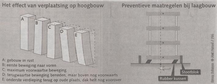 De problemen ontstaan, aldus de onderzoekers, wanneer het gebouw net ‘op snelheid’ is gekomen door de eerste snelle bodembeweging. Als juist op dat moment de bodem weer snel terug beweegt, komt de klap dubbel hard aan.
