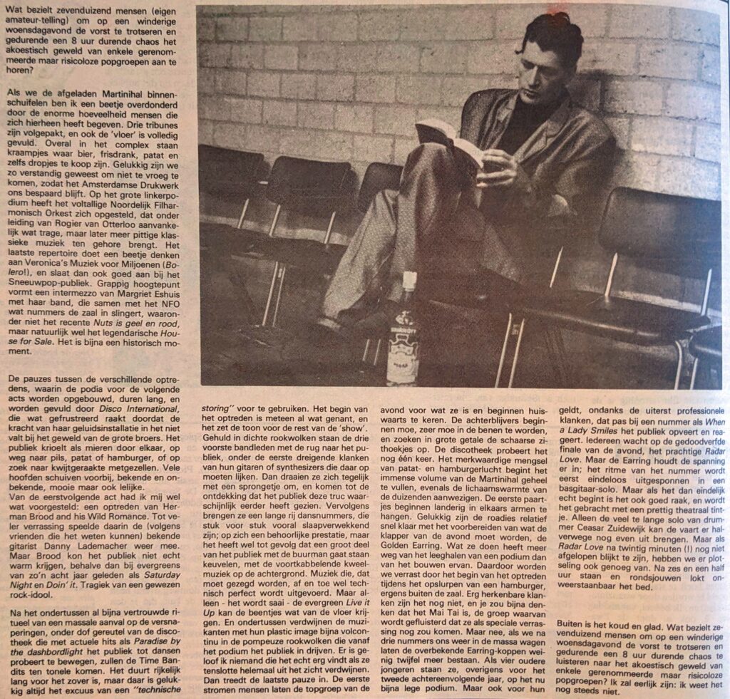 Maar ook voor hun geldt, ondanks de uiterst professionele klanken, dat pas bij een nummer als When a Lady Smiles het publiek opveert en reageert. ledereen wacht op de gedoodverfde finale van de avond, het prachtige Radar Love. Maar de Earring houdt de spanning er in; het ritme van het nummer wordt eerst eindeloos uitgesponnen in een basgitaar-solo.
