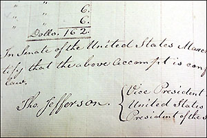 Binnen enkele minuten bevestigde Senaats-archivaris Richard Baker de unieke vondst: het ging om het originele kasboek van de Senaat, waarin tientallen senaatsvoorzitters, onder wie historische grootheden als John Adams en Thomas Jefferson, de kleinste inkomsten en uitgaven met hun handtekening hadden bekrachtigd.