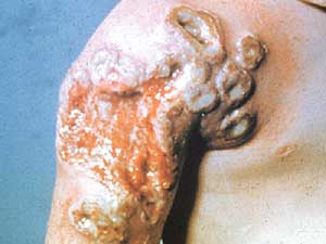 Bij een deel van de gevaccineerden verloopt een infectie met koepokken echter alles behalve mild. Door krabben kunnen de hevig jeukende blaren per ongeluk worden verspreid naar andere lichaamsdelen, zoals oogleden, neus, mond of geslachtsdelen. Via het bloed, en bij eczeempatiënten ook over de huid, breiden de blaren zich soms spontaan over het lichaam uit. Bij een verminderde weerstand kan de infectie totaal uit de hand lopen. Ledematen kunnen afsterven door ontstekingen die bacteriën vrij spel geven. Als het virus de hersenen bereikt, kan de schade leiden tot blijvende invaliditeit of zelfs de dood.